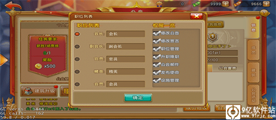 会长享有如截图所示的权限。以及给公会成员分配权限的权利。