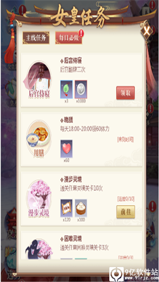 7.任务(通关灵境关卡1-7开启):除了灵境以外,任务是陛下获得大量经验的重要途径之一,也可获得锦鲤、元宝等丰厚奖励,还有不要忘记早中晚到任务中领取限时体力哦!