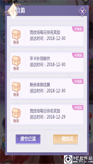 12.邮件(通关灵境关卡1-7开启):邮件中不仅会有游戏内的一些通知,如竞技场排行奖励、调戏事件等等,也会有游戏更新和维护相关的一些通知哦。