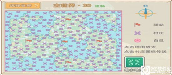 当然,如果你想去的点,没有驿站也没关系,继续点击驿站内的水晶,打开世界地图,任意找一个村庄,传送过去就好了。这样能直接更快速的到达你想到的地图角落。