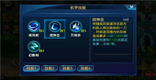 【战神击】伴随疾风快冲击前方,不断挥动剑刃可移动却不能前后!