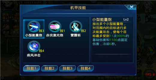【小型能量炮】放出多个能量炮小型,困住范围内目标给予伤害!