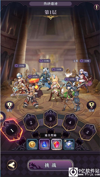 如果打不多敌人时候,可以尝试调整阵容或站位,如果还不行,就可以在通过记录中查看其他玩家的通关阵容哦。左侧还有一个排行按钮,可查看你的排名。