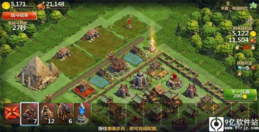 2、战斗的兵种的选择可根据每次的作战目的进行自由搭配。对于掠夺资源可以骑兵突击队为主要兵种,而面对防御建筑多的敌对文明则需要更多的骑马兵,获取全胜红利奖励则需要各类兵种合理搭配,且对于战斗需要策略的进行布局。