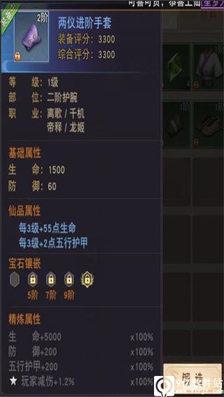 每个部位可镶嵌三个宝石,镶嵌宝石后可获得相应属性加成,宝石有等级之分,最高等级的宝石为10级,越高等级的宝石属性加成越多。4个1级宝石合成1个2级宝石,以此类推。当全身镶嵌的宝石等级总和到特定等级时,会获得额外的BUFF加成。宝石获取途径:挑战副本掉落,商城购买。