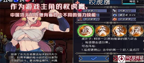 凉屋的亲女儿,继承了东方老拳法秘术的功夫少女,利用丰富的格斗战技应对激烈多变的战斗。拳法刚猛爆裂,并具有良好的体力。权姐作为这个游戏的初始角色,各项数据都中规中矩,动作也较为灵活,攻击方式是充满功夫风格的四连段,伤害和操作手感都很不错。