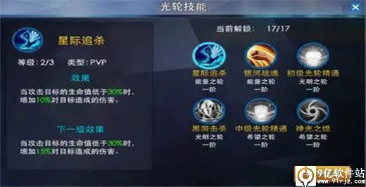 光轮不单单是酷炫还会有强大的光轮技能,一共17个技能,每一个都是十分强大,这些技能在与其他奥特战士的切磋中非常实用。想要解锁技能就需要对应技能的“技能芯片”,想要获得只能通过活动才可以了,或许市场上会有也说不定呢。