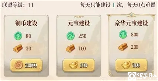 武圣三国每天可建设1次,0点重置,稳定获取青龙佩的来源;