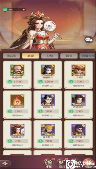 演武币可以前往商店兑换资源。如果只想开武将,前期建议买观星灵珠,开出5星的概率还是挺高的,比较划算。如果是想凑狗粮或指定武将,可定向购买武将碎片。