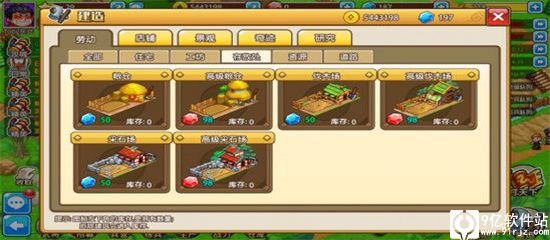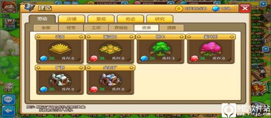 1、在【建造】→【劳动】→【资源】内可以看到游戏的三大资源类型:农田和南瓜田可以保障小小村的粮食充足;树木跟紫叶,是小小村的木材保障;而石矿与金矿,则是小小村富强的彰显与代表!