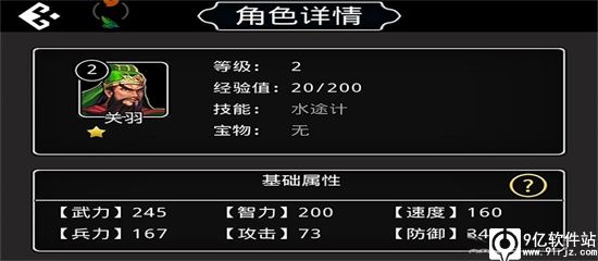 玩家在武将界面中可以查看到所有武将的信息,点开武将可查看到详细的属性,武将的兵力象征着武将的血量。在战斗中兵力为0时则意外着必须退出战斗。武将的武力影响普通攻击的伤害及技能攻击的成功率。武力属性越高的武将在战斗中造成的伤害越高。