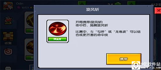 四、旋风斩(被动技能):这个也是前期解锁的几个技能之一,效果是命中敌人会轮着武器旋转三圈,对周围敌人造成三次伤害,期间会触发各种被动,比如龙卷风,吸血,吸体力