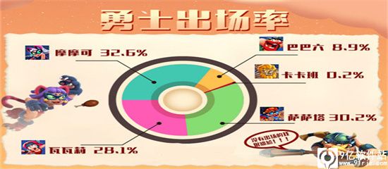 从比赛的数据中得到,本次野蛮人公开赛M1赛季中摩摩可共出场172次,使用率高达32.6%,另外萨萨塔出场159次,占30.2%的使用率!可以说这两位英雄是现阶段最受选手喜爱的英雄。当然,瓦瓦莉仍旧在英雄选择中以28.1%的使用率占有一席之地。