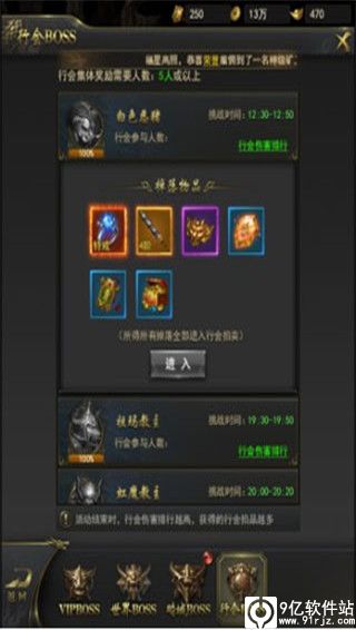 3、行会BOSS的道具奖励被拍卖后,所得利润将有参与击杀BOSS的行会成员平分。