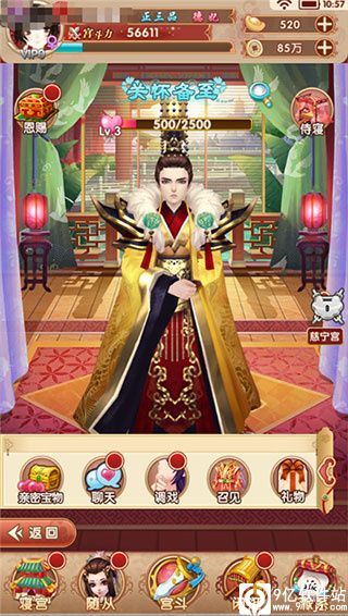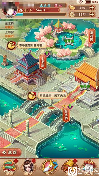 提高小主们的人气值,魅力值,以及与好友之间的好友度,需要小主们互赠鲜花,通关关卡第23关,可前往寝宫,进入鲜花界面。