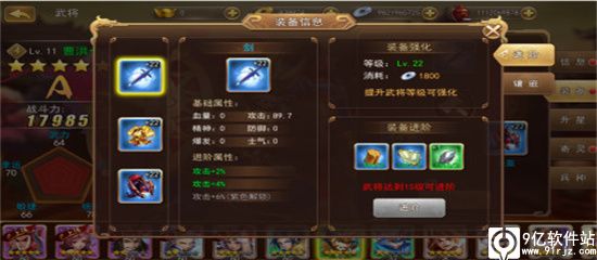 主公可以通过消耗银币对武将的装备进行强化,强化后装备属性增强。但是强化等级不会超过该武将等级的2倍。