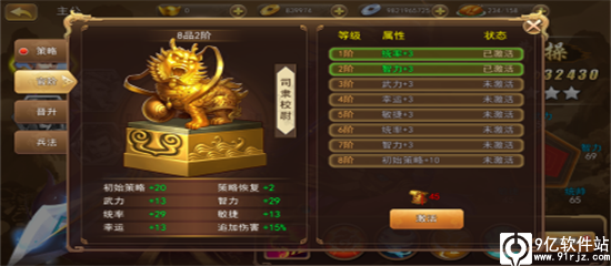 【官阶提升】而主公想要提升官阶,就需要消耗功绩值,官阶越高,对主公的提升越大。