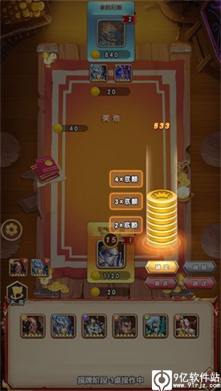发牌的同时,系统默认会从双方各抽取一定积分作为保底的投入(小编打的二人场,一场保底投入是20积分哦)