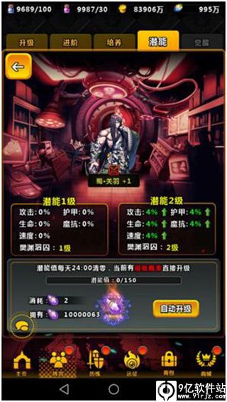 1、潜能潜能是命运战歌红包版游戏中能有效提升速度属性的重要方式,一般培养成功点都在80-90%左右,尽快把英雄普遍都提到5级潜力,加的属性非常多,潜能石主要是刷黄巾得到,比较珍贵,10钻1个。