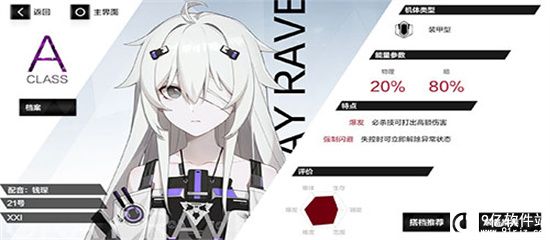 核心被动:影棱集聚会让21号的普攻凝聚影棱能量,达到四点时可制造暮光矩阵,暮光矩阵存在3秒时将增加21号2点必杀技能量和50点闪避值。在暮光矩阵存在期间,若协作子机发起进攻,则会造成一次性25%暗伤。