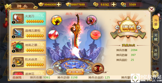 分析:火龙刀强调伤害,而防御加成比较适合刀客,每个神兵上限有15个天赋点,而每个天赋五点可以点满,这时候如果取舍就要看本身的职业和对属性的需求了。