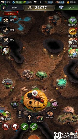 蚁群的数量代表了一个蚂蚁家族的兴衰,为了蚁国的发展和荣耀,你必须要尽可能多的提升蚁群的数量,带领它们抵御外敌,争夺资源,扩张势力!