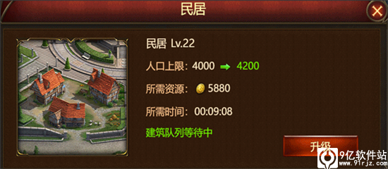 3、与之对应的是民居,提升等级可以增加人口数量,从而招募更多士兵以形成更强大的战力。
