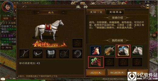 1、主线任务赠送枣红马后,开启坐骑功能。