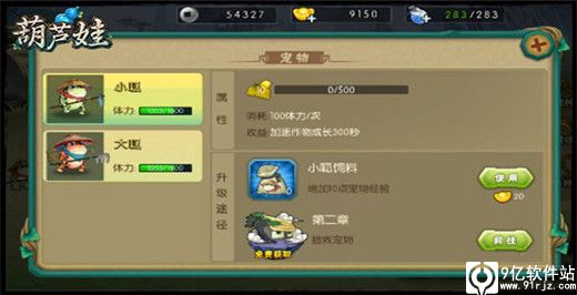 3、另外,还有可以帮助我们加快作物成熟的小宠物,在通关第二章组队副本副本即可获得第一个宠物小呱,部分组队副本掉落饲料、购买饲料喂养宠物即可升级,也可元宝直接购买。