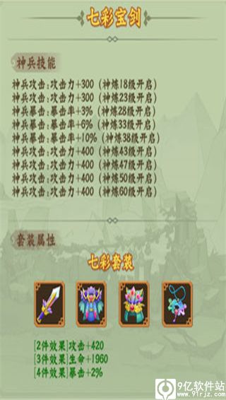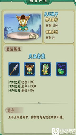 目前游戏蓝色装备只有灵玉套装,分为4件套,凑齐复数套装后会有相对应的套装属性,灵玉神枪作为攻击类武器而且与多数葫芦娃有着缘分效果加成,推荐作为前期过度所使用的主要攻击武器。