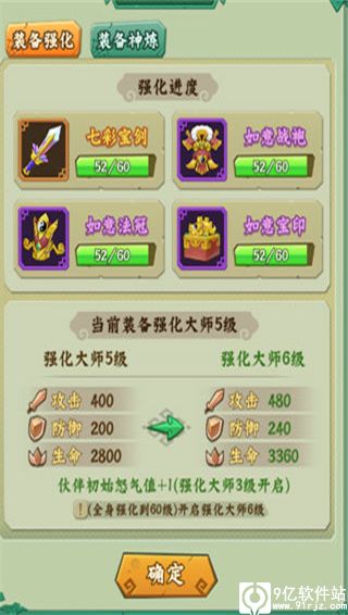 5、注意强化大师:在游戏中强化大师包括装备强化,装备神炼,升星大师,而每次提升到一定的级别就可以激活强化大师而额外获取游戏属性加成。