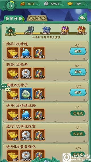 2、根据每日任务玩游戏:游戏中的日常任务都是游戏最基本的玩法,每天都会重置,每次完成日常任务都会获得游戏资源奖励和积分,积分达到一定的数量可以额外领取积分宝箱。