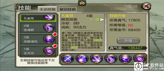 1、唐门主动技能:流云矢:对单个敌人造成较高伤害。唐门瞬发技能,输出比普攻伤害高。打架时其他技能冷却时使用增加伤害。