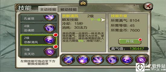 悲酥清风:降低一定范围内敌人的攻击力。唐门减低对方属性的技能,削弱敌人。冷却时间和持续时间一样长,可一直使用,玩家对战用处较大,副本一般。
