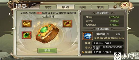 第二步就是镇器的全面收集,每个镇器都有着自己独特的潜能技能。单个镇器的全部配件达到紫色品质以上时,解锁第一级潜能,品质越高潜能等级越高。尝试将全部镇器的潜能都解锁吧!