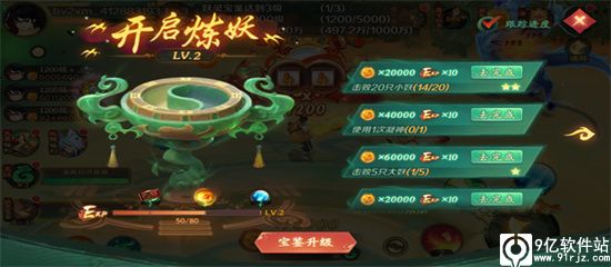 7、妖灵宝鉴升级,完成指定任务即可提升宝鉴等级并领取奖励(经验值、妖灵、元神、狂暴、凝神、神灯、冰咒等)