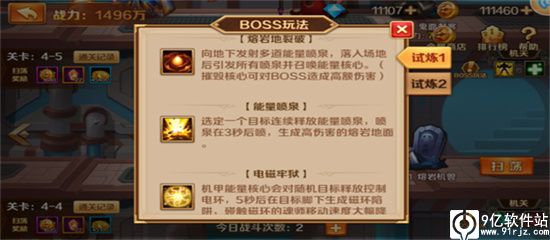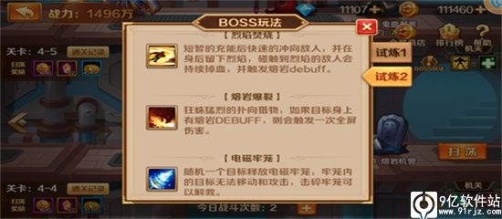 BOSS技能:烈焰焚烧、熔岩爆裂、电磁牢笼。只要DPS够,过关还是不成问题的。