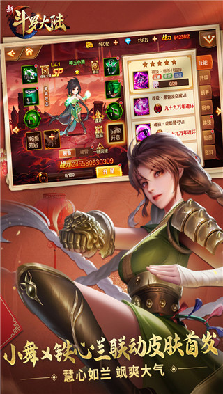 1、完美再现原著小说武魂合体技缘分卡牌共同上阵,可触发武魂融合技,华丽的视觉效果,强悍的打击力,将游戏推向高潮。武魂合体技完全遵照原著描写,幽冥白虎变、修罗血剑,熟悉的名字让人回归原始的感动。