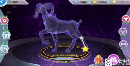 星座选择:星座界面右边按钮可切换星座,每个星座对应不同的挑战内容,星座需要点亮上一星座所有星星解锁。