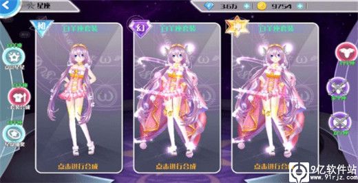 魔法工坊可以从心舞九游版背包进入,也可以在星座界面点击套装合成,选择想要合成的服装进入魔法工坊。