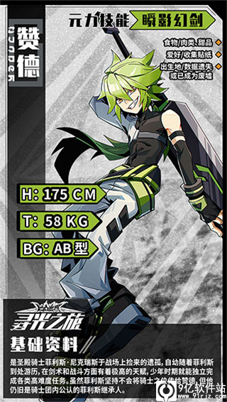 赞德,是圣殿骑士菲利斯·尼克瑞斯于战场上捡来的遗孤,自幼随着菲利斯到处游历,在剑术和战斗方面有着极高的天赋,少年时期就能独立完成各类高难度任务。虽然菲利斯坚持不会将骑士之位传给赞德,但他仍旧是骑士团内公认的菲利斯继承人。