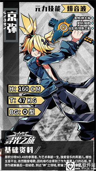 京弥,原积分榜NO.49的参赛者。为艺术奉献一生,独爱音乐的弄潮儿。哪怕五音不全,依然酷爱唱歌。因机缘巧合得到了作为重要入口的石板,为破解寻光之旅凹凸大赛最后一层秘密、到达“神”之领域,欺骗了安特和维德。