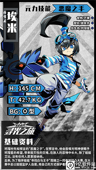 埃米,玳瑁村先知预言的“恶魔之子”,在预言中,他会吞噬光明神使赐予玳瑁星的希望,带来毁灭性的灾难。在族人的忌惮中长大,除了姐姐艾比,没有任何人愿意接纳他。
