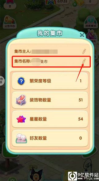 2、长按集市牌的位置,在我的集市下面找到集市名称并点击后面的铅笔图标;