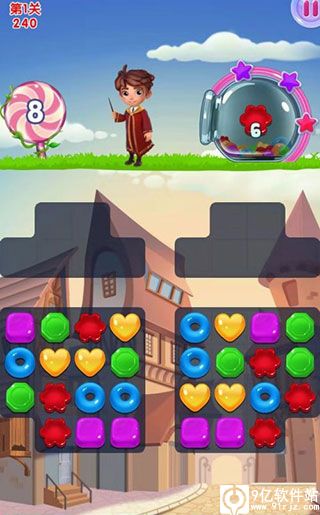 6、把4颗糖果连在一起会形成强力的魔法特效,启动它会消除直线上的所有糖果