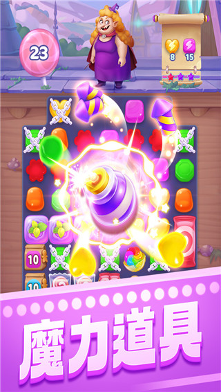宾果消消消手游在沿用传统三消玩法的基础上,增加了独有的女巫玩法,让玩家不再被繁琐的规则束缚,达到眼前一亮的效果。在女巫模式中,拥有神秘力量的女巫将会站在玩家的对立面,不断地骚扰玩家的攻略进度,要么射出几个小怪兽,要么赐予几颗硬糖,要么冰冻某些糖果,让人防不胜防,但只要我们细心处理计算步骤,这些看起来花里胡哨的东西很快便能够被消除。但需要注意的是,如果你不打倒三个女巫,那么这些烦人的东西将会源源不断的送到你的场上来,所以尽快完成任务目标,消灭这三个烦人的家伙吧。游戏除了基础玩法以外,还增加了新的养成玩法,在三消游戏中经营店铺,这是市面上的同类手游没有探索过的全新玩法,玩家在游戏中可以按照自己的意愿布置店铺,并以此吸引更多的顾客赚取游戏货币。如果你也想要体验一下这款不一样的三消游戏,那就马上来本站下载这款宾果消消消官方版游戏吧。
