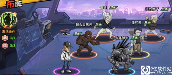 3、该阵容在金属骑士BUFF加成下,以KING为核心输出,饿狼辅佐补齐伤害。在封锁敌方两点能量值同时亦可打出爆炸伤害。