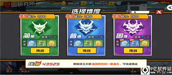 同时不同的难度战斗后可以获得不同数量的DNA,累计收集到一定数量的基因后还可开启基因方盒,方盒里可是有很多钻石和卡片升星卡的~