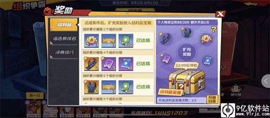 奖励分为个人奖励和组织奖励,组织奖励海选赛可以获得卓越增幅碎片以及专属道具碎片箱(里面是疫苗人和背心尊者的超绝道具碎片)决赛主要包括徽章及典藏底座。个人奖励每人需22:00以后自行领取,该奖励不会通过邮箱以邮件的形式发送给你,里面主要包括精致底座等,注意若个人物资达到200可以再开一次,个人物资每次进攻可以获得,胜利可得40物资,失败可得20物资。