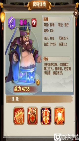 游戏以塔防和卡牌为主要玩法,操作简便,轻松掌握;游戏提供近百位武将通过自由组合、自由培养,最大限度发挥每位武将的极致战力,运筹帷幄,决胜千里!